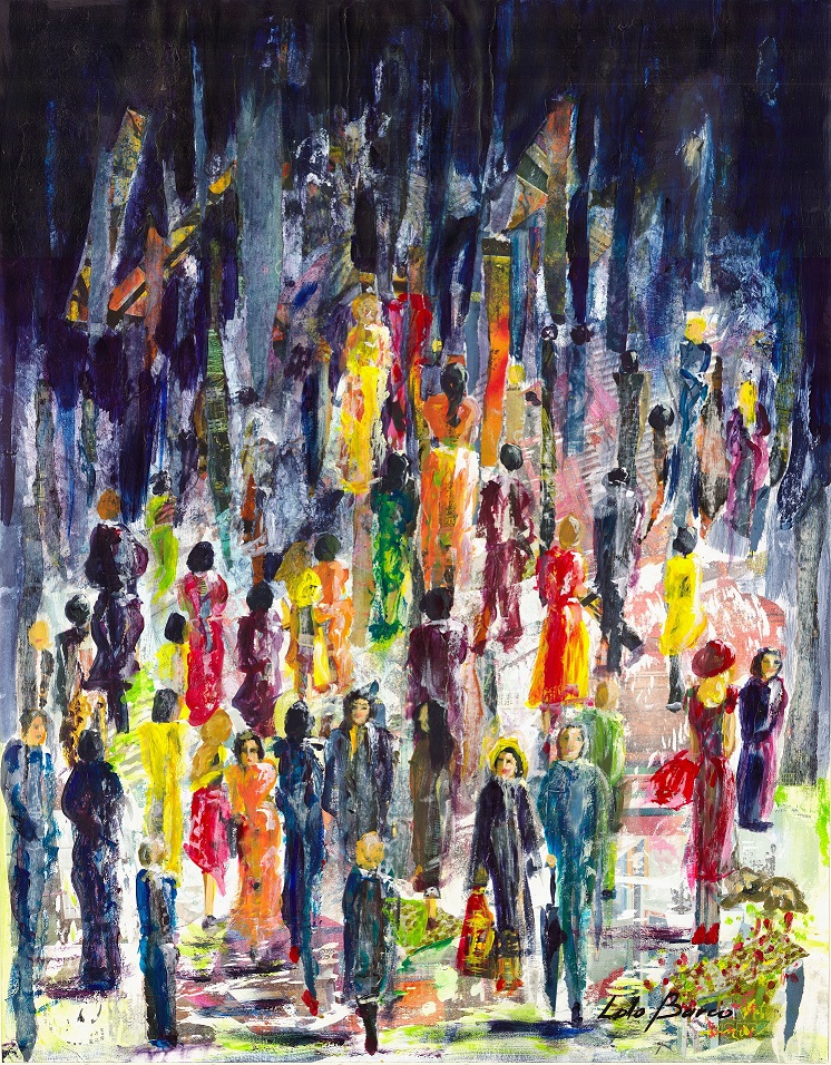 Cette peinture urbaine contemporaine capte la vie, la mouvance et la diversité de la foule animée. Les couleurs vives et les empreintes lumineuses créent une atmosphère dynamique et captivante, mettant en valeur le mouvement et la diversité de la foule déambulante. La justesse des formes et des couleurs en font une œuvre marquante, captivante et vibrante de vie, qui vous transportera dans un tourbillon de couleurs et de mouvements. C’est une œuvre qui célèbre la diversité et l’humanité en un seul et unique tableau, une composition unique et marquante.